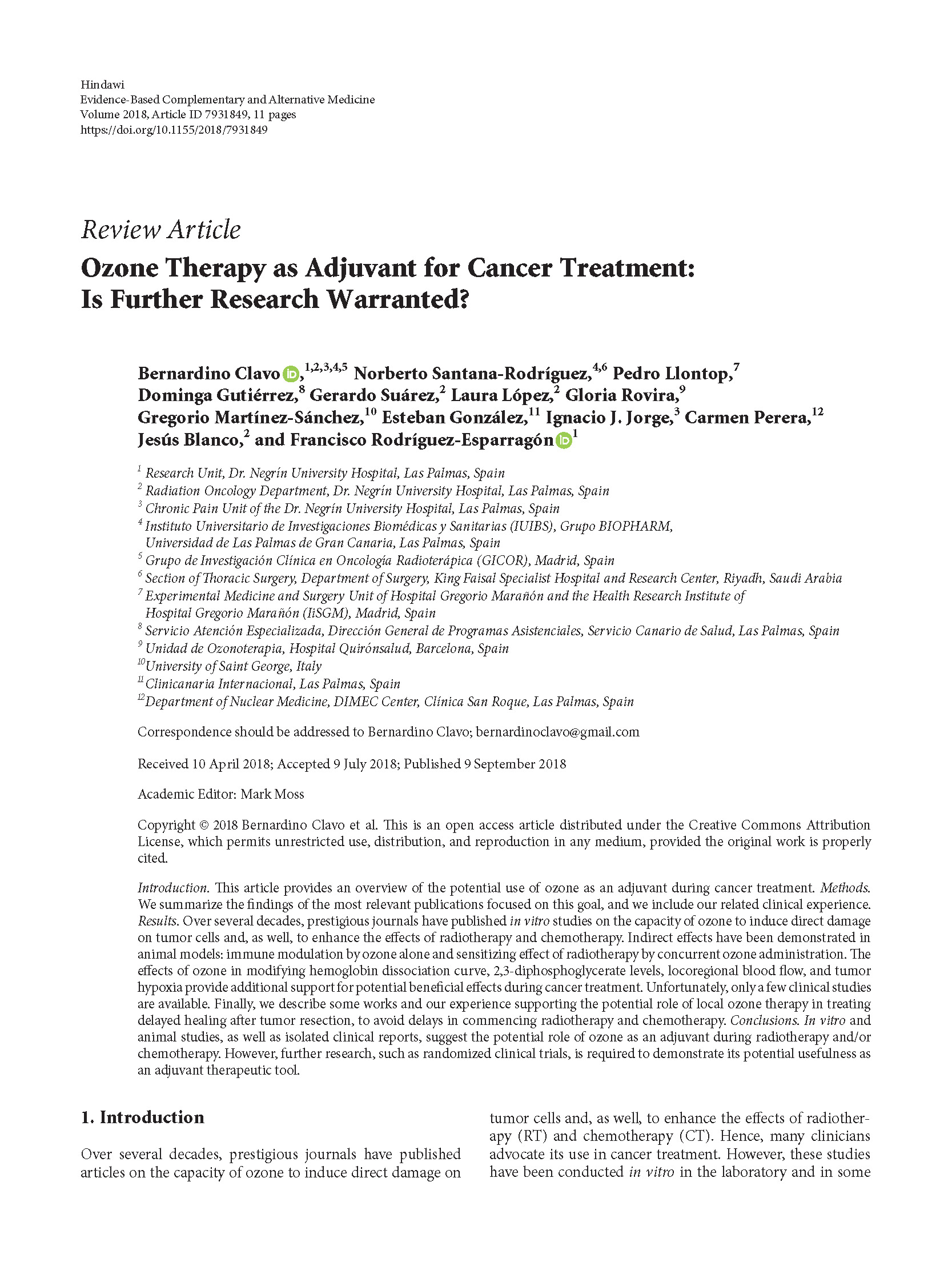10. Clavo B, Santana-Rodríguez N, Llontop P, et al. Ozone therapy as adjuvant for cancer treatment Evid Based Complement Alternat Med. 2018;2018:1-11. doi:10.1155/2018/7931849